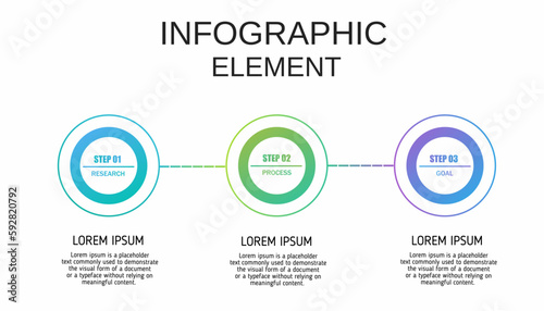 © Almultazam, Naklejka premium Vector infographic template. Business process with 3 steps options circles, isolated white background, workflow diagrams.