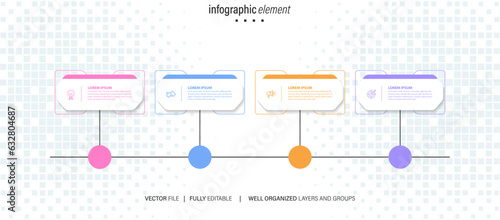 Naklejka premium Vector infographic template with 3D paper label, integrated circles. Business concept with 4 options. For content, diagram, flowchart, steps, parts, timeline infographics, workflow, chart.