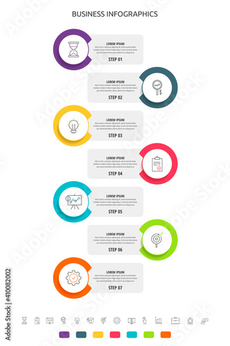 Fototapeta premium Vector infographics circles with 7 steps, labels. Line chart. Timeline used...