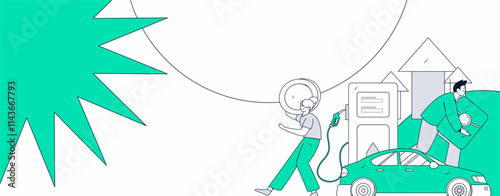 © Lyn Lee, Fototapeta premium Vector Internet operation hand-drawn illustration of people getting discounts for refueling their cars