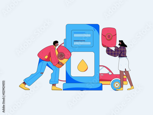 © Lyn Lee, Obraz premium Vector Internet operation hand-drawn illustration of people getting discounts for refueling their cars