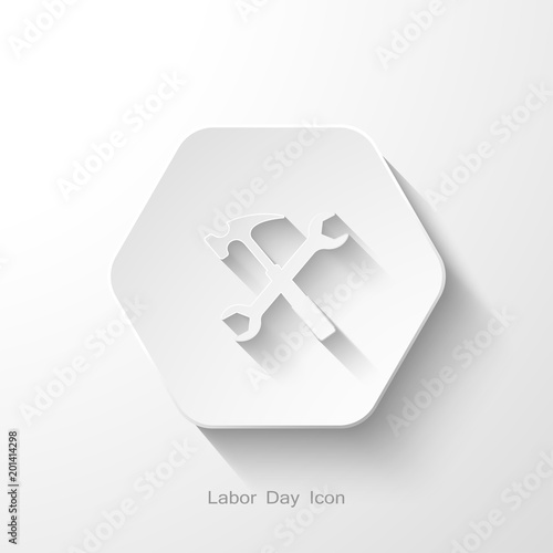 © DreamLine_, Obraz premium Vector isolated hexagon flat icon of wrench and hammer with long shadow on the light background.