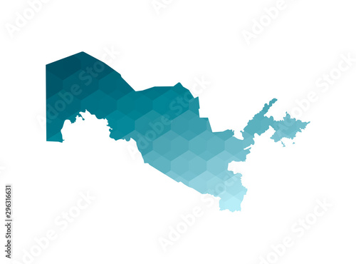© Olli, Fototapeta premium Vector isolated illustration icon with simplified blue silhouette of Uzbekistan map. Polygonal geometric style. White background