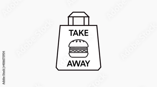 © Eduardo, Naklejka premium Vector Isolated Illustration of a Take Away Bag with a Burger. Black and White Take Away Bag and Burger Icon