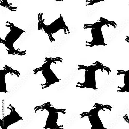© Yuliia, Obraz premium Vector isolated illustration of pattern with goats.Black and white pattern with animals.