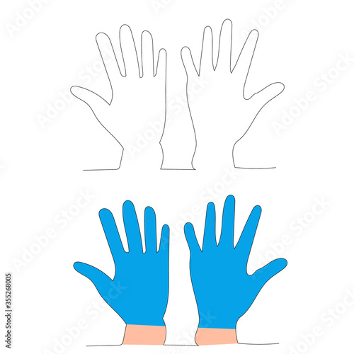 © zolotons, Fototapeta premium vector, isolated, medical gloves blue continuous line drawing, sketch
