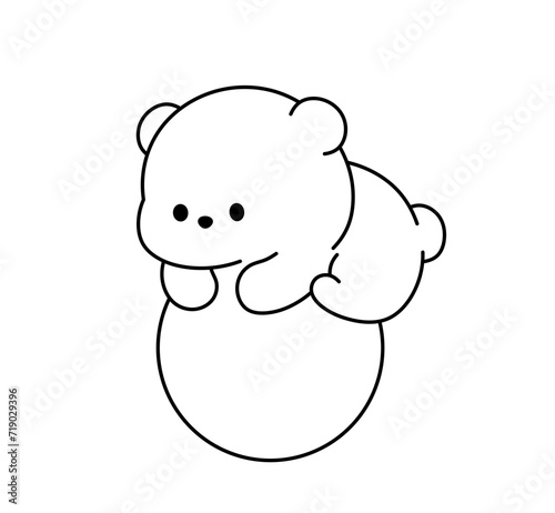 Naklejka premium Vector isolated one single cute cartoon funny bear playing with ball colorless black and white contour line easy drawing