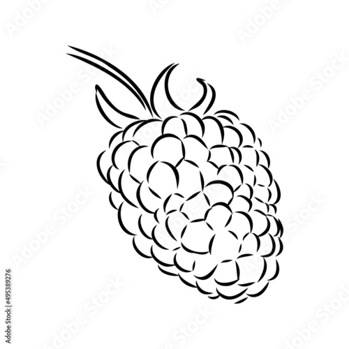 Fototapeta premium Vector isolated raspberry berries branch contour line drawing. Colorless...
