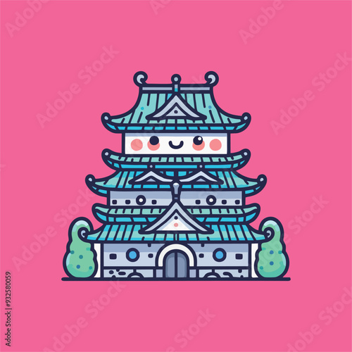 Fototapeta premium vector Japanese house with colorful lines and colors, cute characters