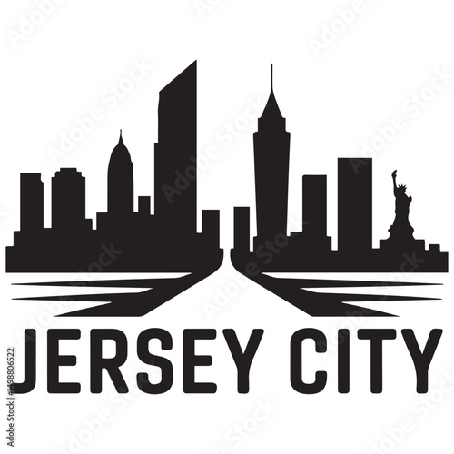 © firoz, Fototapeta premium Vector Jersey City skyline. Travel Jersey City famous landmarks. Business and tourism concept for presentation, banner, web site. Vector black silhouette. with white background