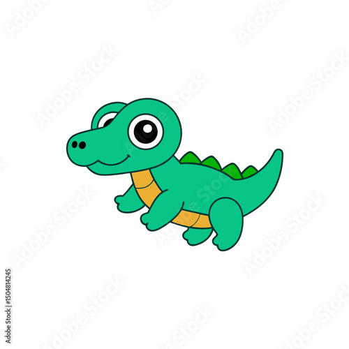 Fototapeta premium Vector Kawaii Jumping Baby Crocodile Side View Illustration