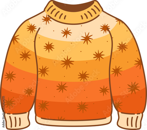 © vectorfusionart, Fototapeta premium Vector knitted sweater is floating against transparent backdrop showing gradient stripes and stars