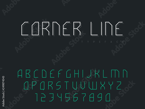 © monkylabz, Fototapeta premium Vector latin uppercase alphabet letters and numbers. Abstract linear font