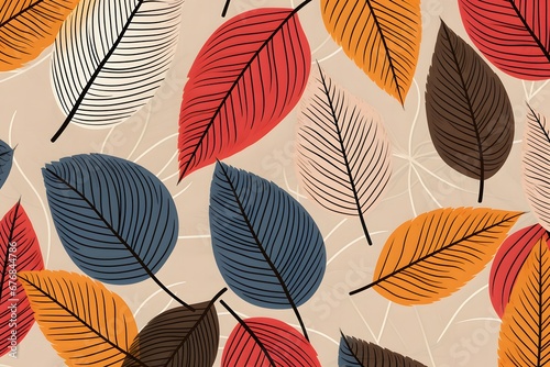 © Mona - Design, Obraz premium Vector leaves seamless pattern, hand drawn autumn background.