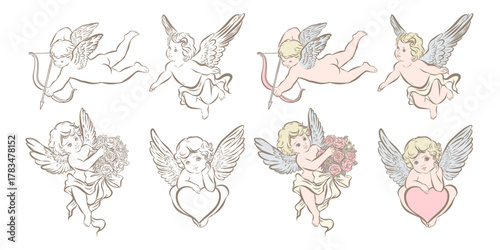 © wonder, Fototapeta premium Vector Line art and clipart of cupid for Valentine's day decorate