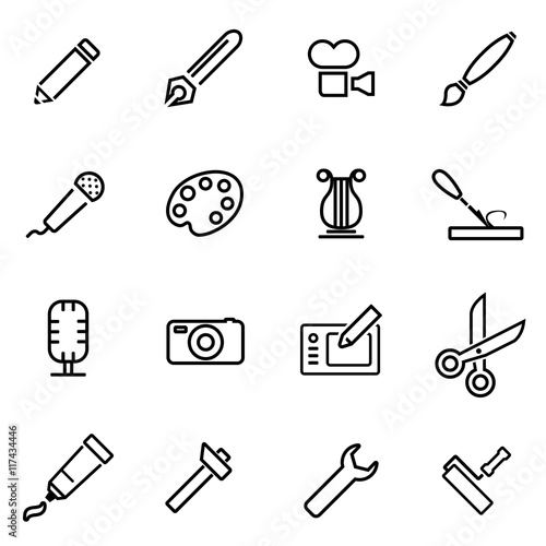 © skarin, Fototapeta premium Vector line art tool icon set