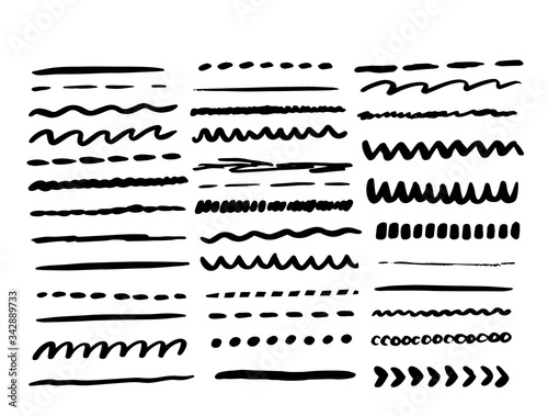 Fototapeta premium Vector line grunge sketch border set. Hand Drawn Brush pen stroke, pencil...