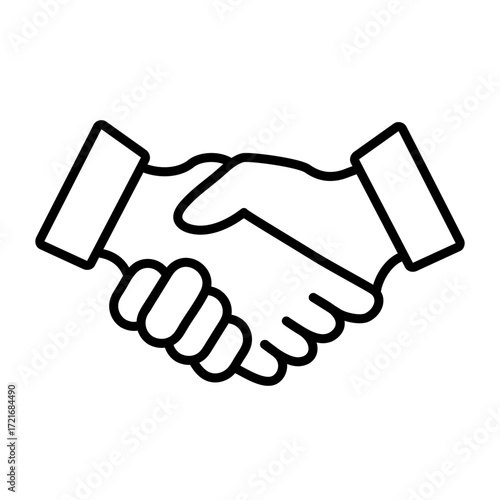 Naklejka premium Vector line icon of a handshake, featuring two hands clasped together in a gesture of agreement or partnership.