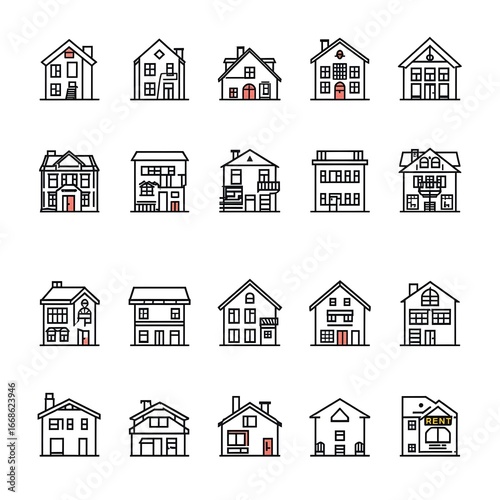 © Aman, Fototapeta premium Vector Line Icon Set of Real Estate and Property