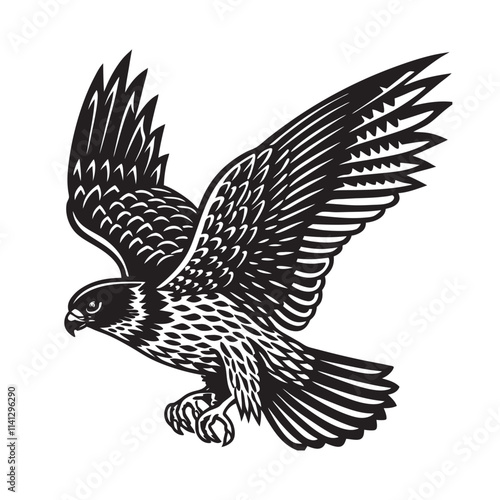 © Issara Jaikeng, Obraz premium vector linocut Hawk spreads wings
