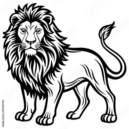 © Vector illustration, Fototapeta premium vector lion hand drawn line art isolated silhouet