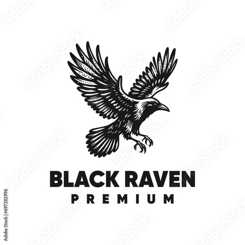 Obraz premium vector logo black raven fly isolated on white