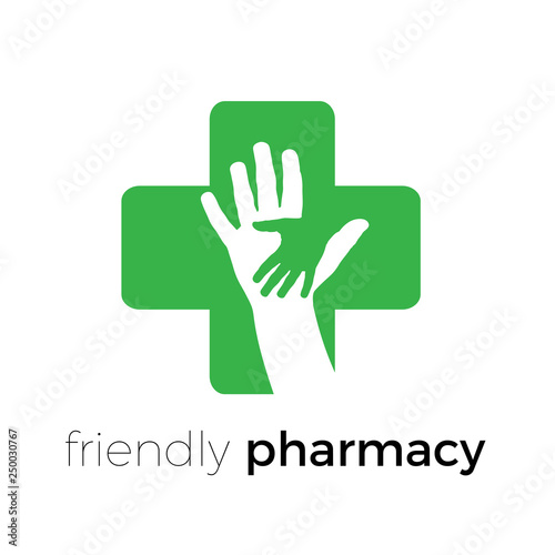 Fototapeta premium Vector logo friendly pharmacy with hands