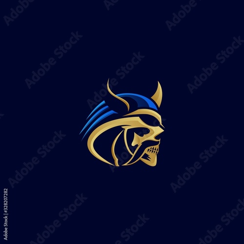 © Artnivora, Obraz premium Vector Logo Illustration Barbarians Skull E Sport and Sport Style.