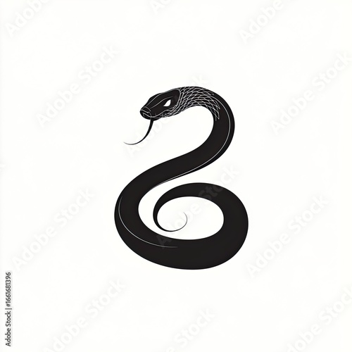 © DnQajik, Obraz premium Vector logo of a simple line-drawn ghost snake, pure black on a white background