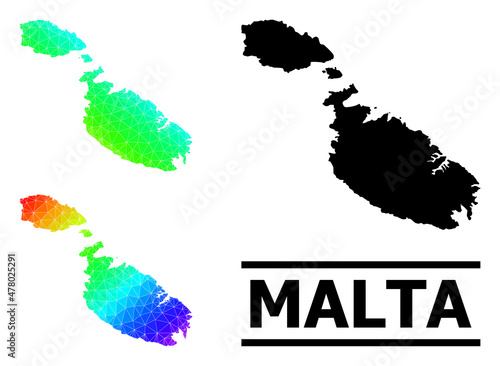 © Sergey, Obraz premium Vector lowpoly spectral colored map of Malta with diagonal gradient. Triangulated map of Malta polygonal illustration.