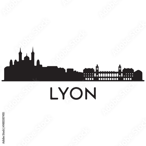 Obraz premium Vector Lyon skyline. Travel Lyon famous landmarks. Business and tourism concept for presentation, banner, web site. Vector black silhouette. with white background
