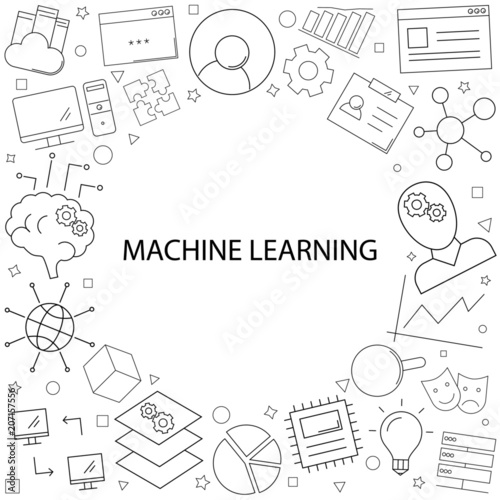 © Дмитрий Горелкин, Fototapeta premium Vector machine learning pattern with word. Machine learning background