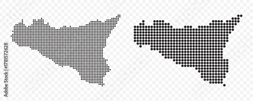© Amir, Naklejka premium Vector map illustration of Sicily Island, Italy, showing dotted pattern and halftone style.