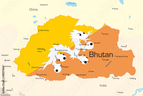 © olinchuk, Obraz premium Vector map of Bhutan country colored by national flag