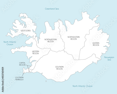 © asantosg, Naklejka premium Vector map of Iceland with regions and administrative divisions. Editable and clearly labeled layers.