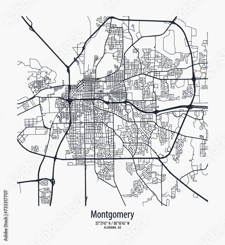 Fototapeta premium vector map of the city, Montgomery, Alabama, state of the United States for...