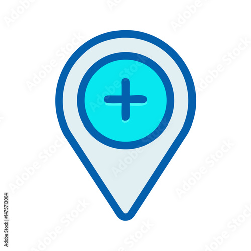 © Sharuzzaman, Obraz premium Vector map pin icon illustration with addition sign graphic