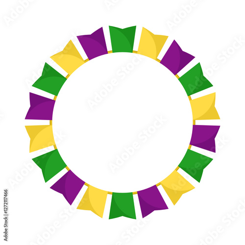 Obraz premium Vector Mardi Gras circle garland frame. Purple, green and yellow flags in circles with empty space on white