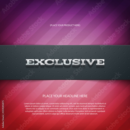 © foxie, Obraz premium vector marketing banner, e-commerce retail promotion poster, "exclusive", with colorful background with diagonal stripes pattern