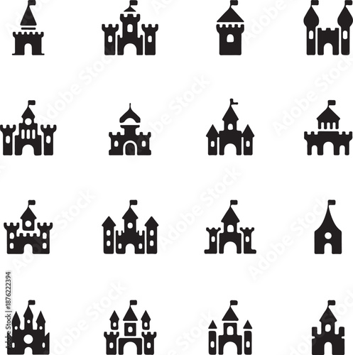© MstHazara, Obraz premium Vector medieval castles icon set