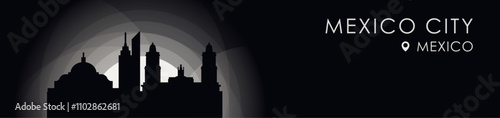 Fototapeta premium Vector Mexico City cityscape banner. Black and white placard profile picture...