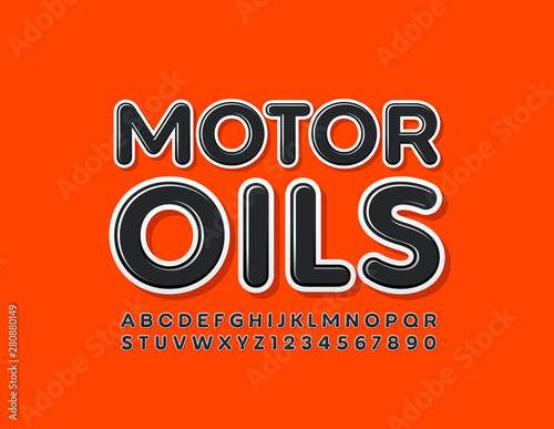 Fototapeta premium Vector modern logo Motor Oils with glossy black Font. Stylish Uppercase Alphabet Letters and Numbers