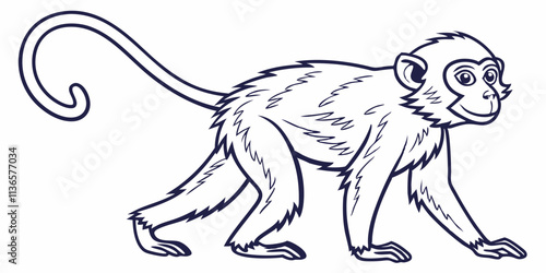 © lampungrevengestudio, Obraz premium Vector Monkey Line Art, isolated white background