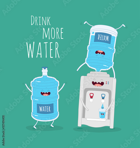 © lenkaserbina, Naklejka premium Vector motivation card. Funny bottle and water cooler. Vector illustration.