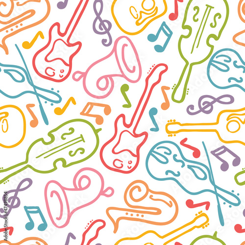 © Oksancia, Fototapeta premium Vector musical instruments seamless pattern background with hand