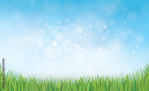 © rvika, Naklejka premium Vector nature background blue sky and green grass.