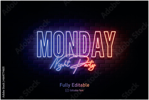 © Moin Hossain, Fototapeta premium Vector neon effect logo for neon text effect and neon light night party editable text effect and night club