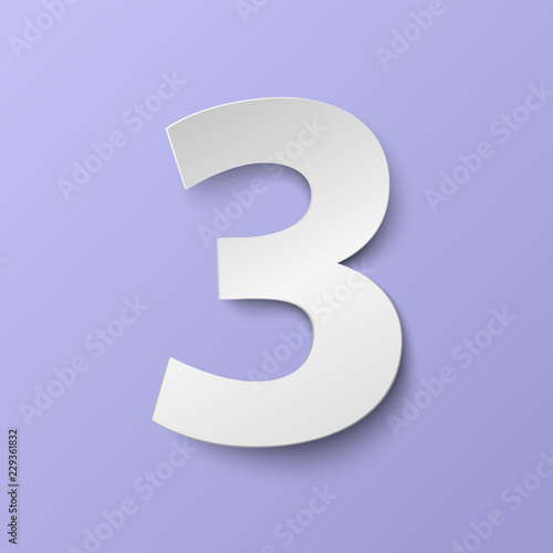 Fototapeta premium Vector number three. White paper number 3. Vector illustration in paper style