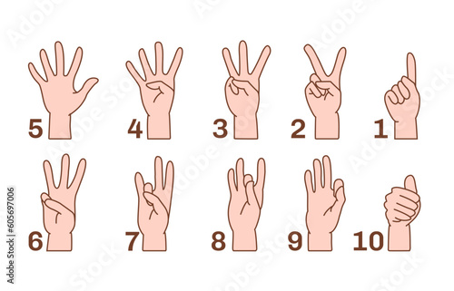 © invinix, Fototapeta premium Vector numbers in sign language one to ten