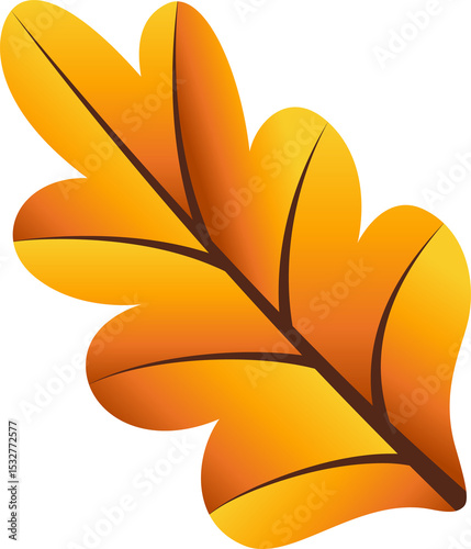 © vectorfusionart, Obraz premium Vector oak leaf is floating on transparent background, showing yellow-orange gradient lobes